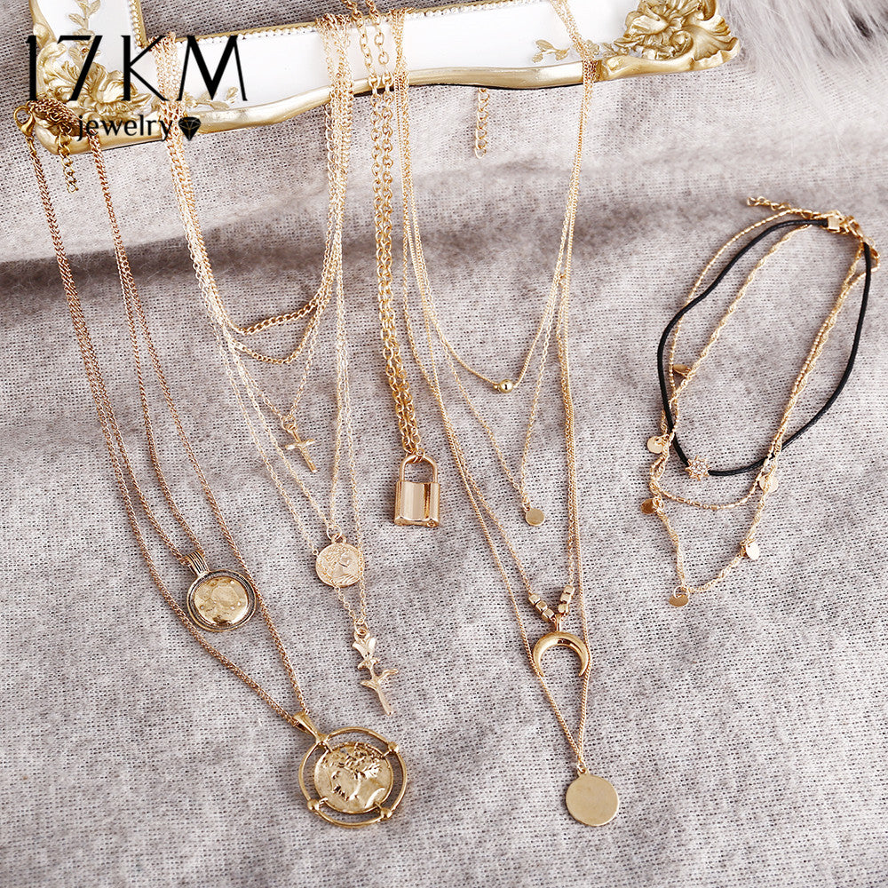 17KM Vintage Gold Round Necklaces Coin Necklaces For Women Girl Long Coin Pendant & Necklace 2019 Female Fashion Jewelry Gift