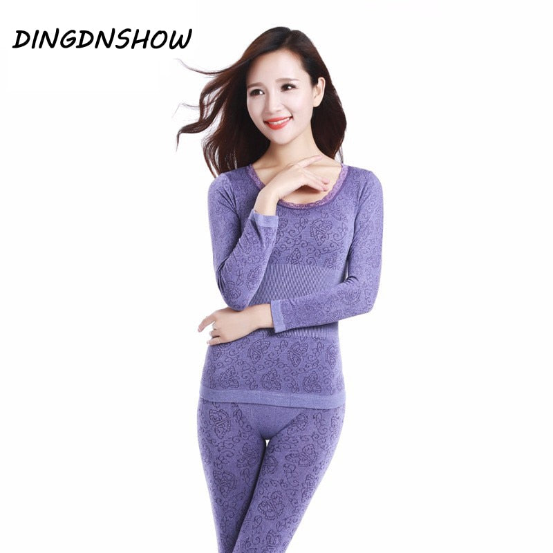 2019 Lace Thermal Underwear Sexy Ladies Clothes Winter Seamless Antibacterial Warm Intimates Print Long Johns Women Shaped Sets