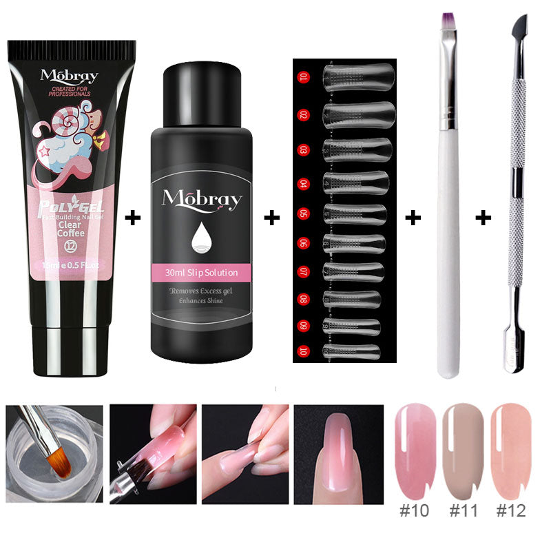 5pcs/Kit Nail Extension Poly Gel Set With Nial Tips Dual Form Qiuck Dry Polygel Builder Gel For Manicure Finger Extension Brush