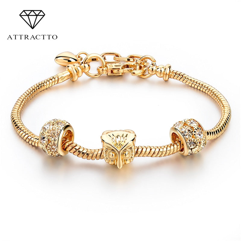 ATTRACTTO Owl Charm Bracelets For Women Luxury Gold Chain Bracelets & Bangles Jewelry Pulseras personalized Bracelet SBR160013 (Owl)