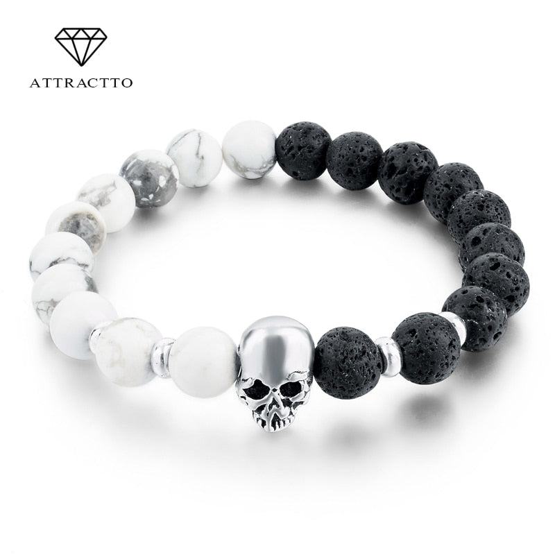 ATTRACTTO New Natural Stone Skull Bracelets Bangles For Women Lava Beads Elastic For Men Jewelry Accessories Bracelets SBR160031