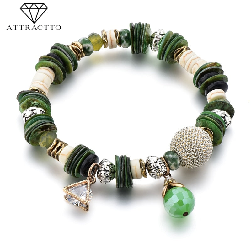ATTRACTTO Green Bohemian Jewelry charm Bracelets Bangles For Women Stainless Steel Bracelet Handmade Jewelry Bracelet SBR190042 (SBR190042GN)