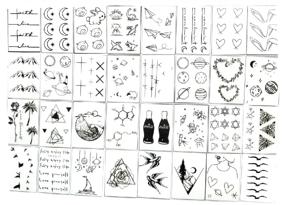 32pcs/set Waterproof Temporary Body Stickers Rabbit Mountain Dinosaur Black Faux Tatouage for Men Women Tatouage Temporaire