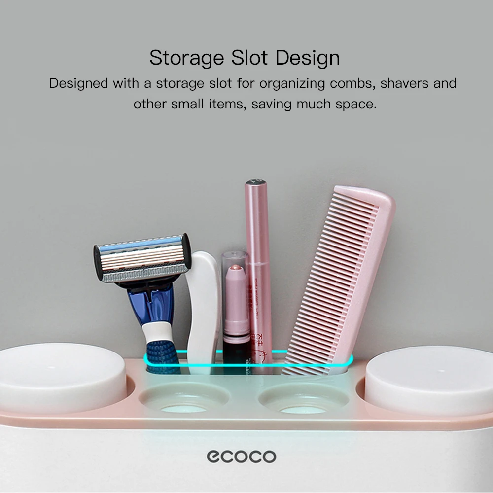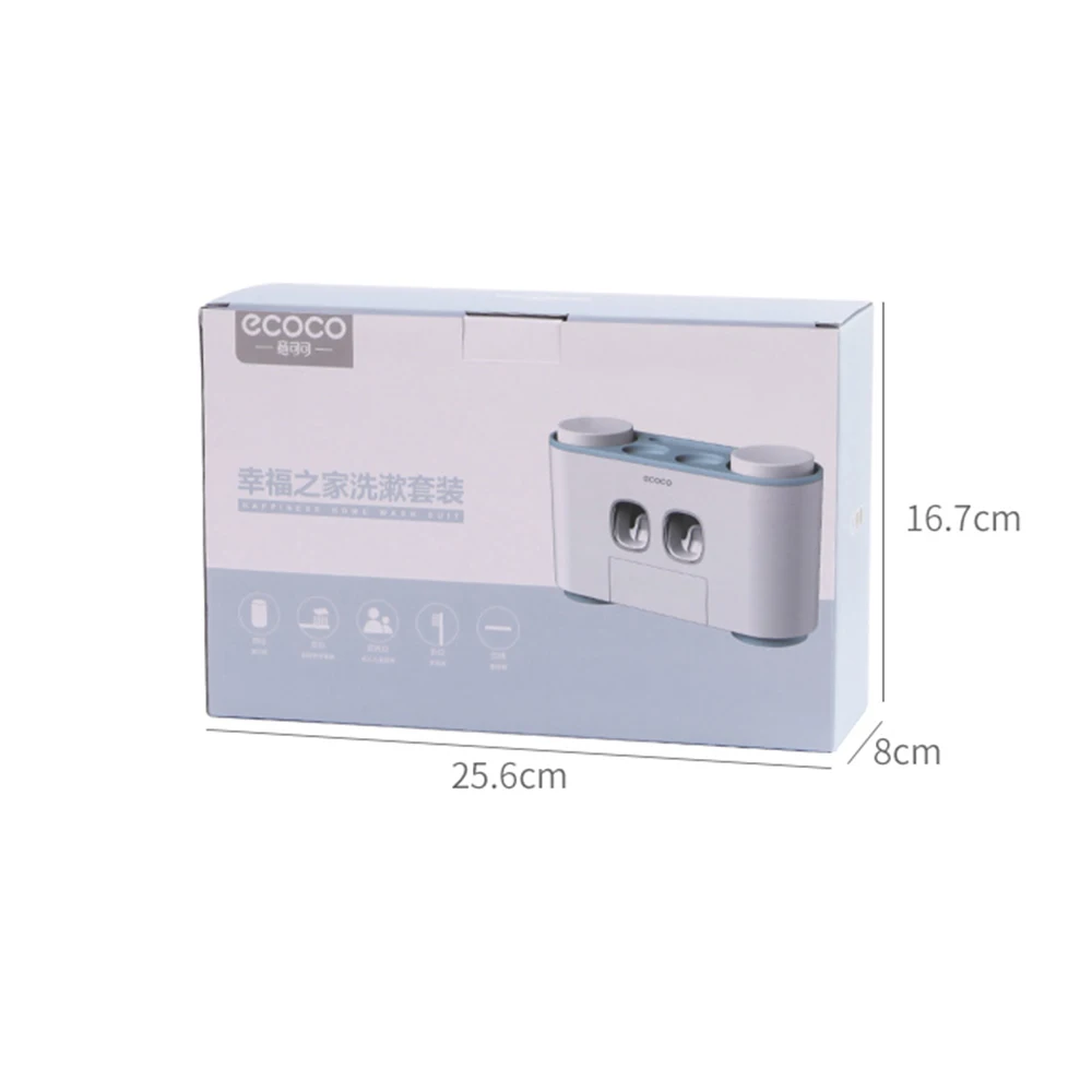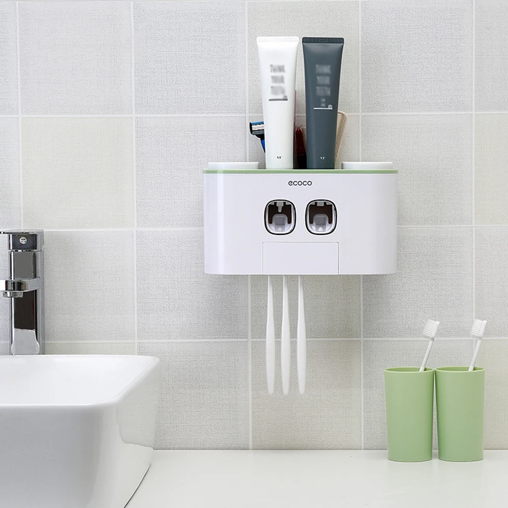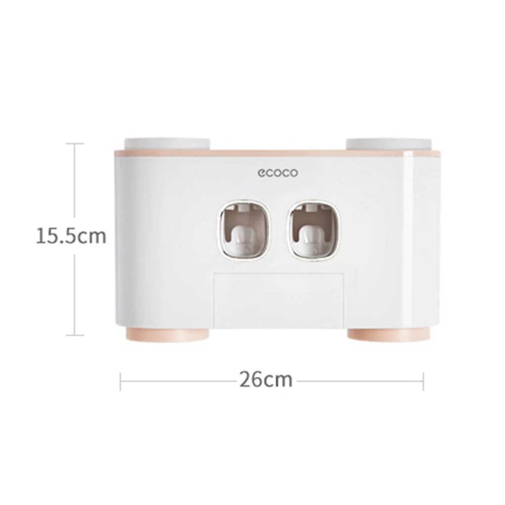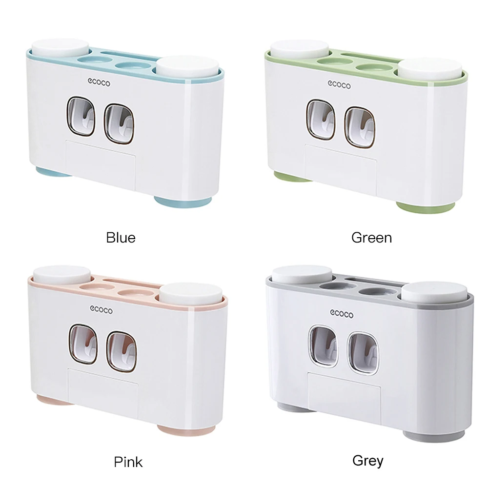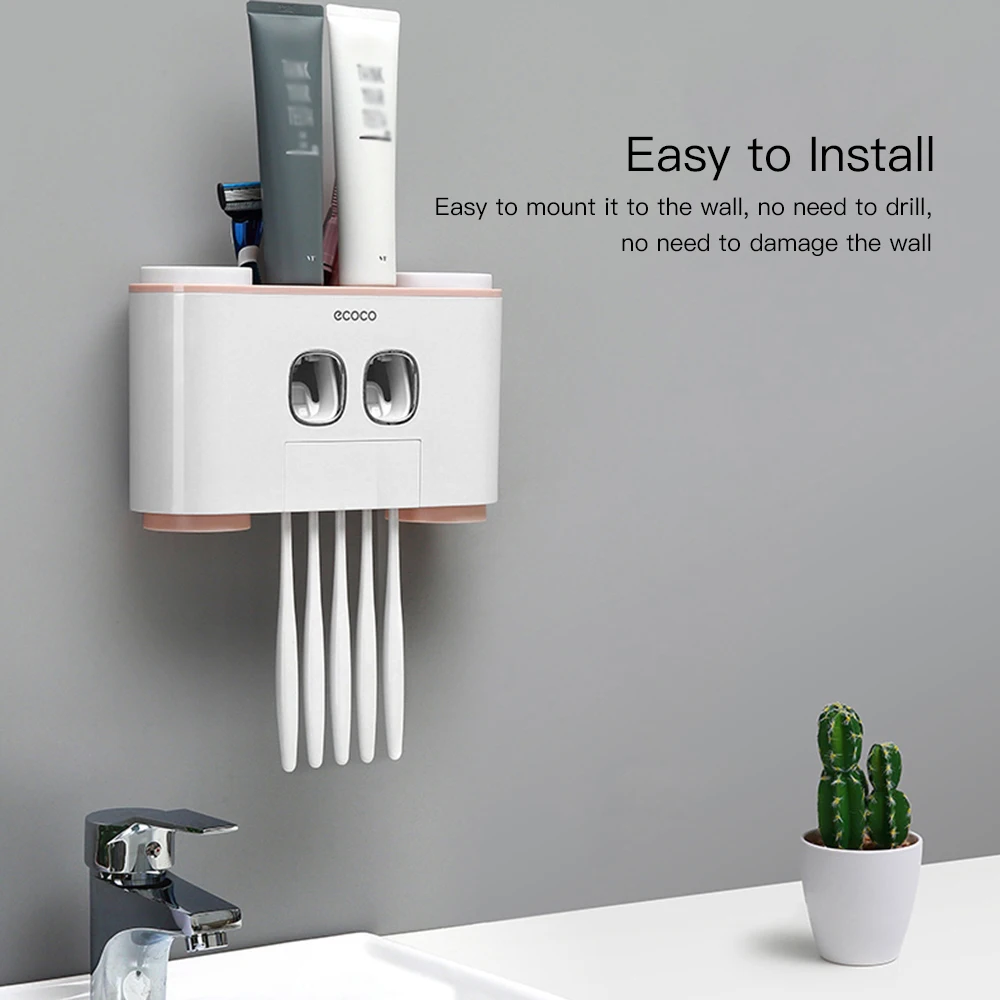 Multi-functional 2-in-1 toothbrush holder & toothpaste dispenser set.
