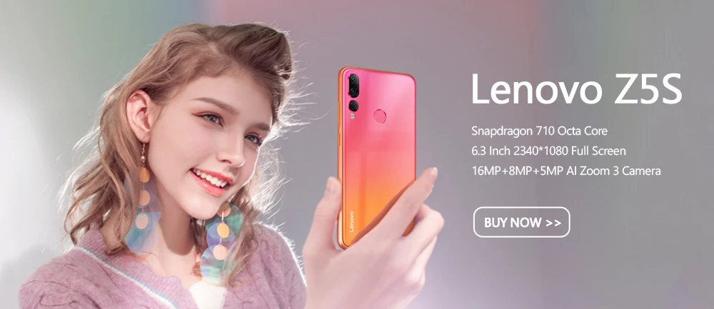 Global ROM Lenovo Mobile Phone 6GB 64/128GB Smartphone Z5S 6.3 Inch 2340*1080 Rear Camera 16.0MP 8.0MP 5.0MP Octa Core Phones