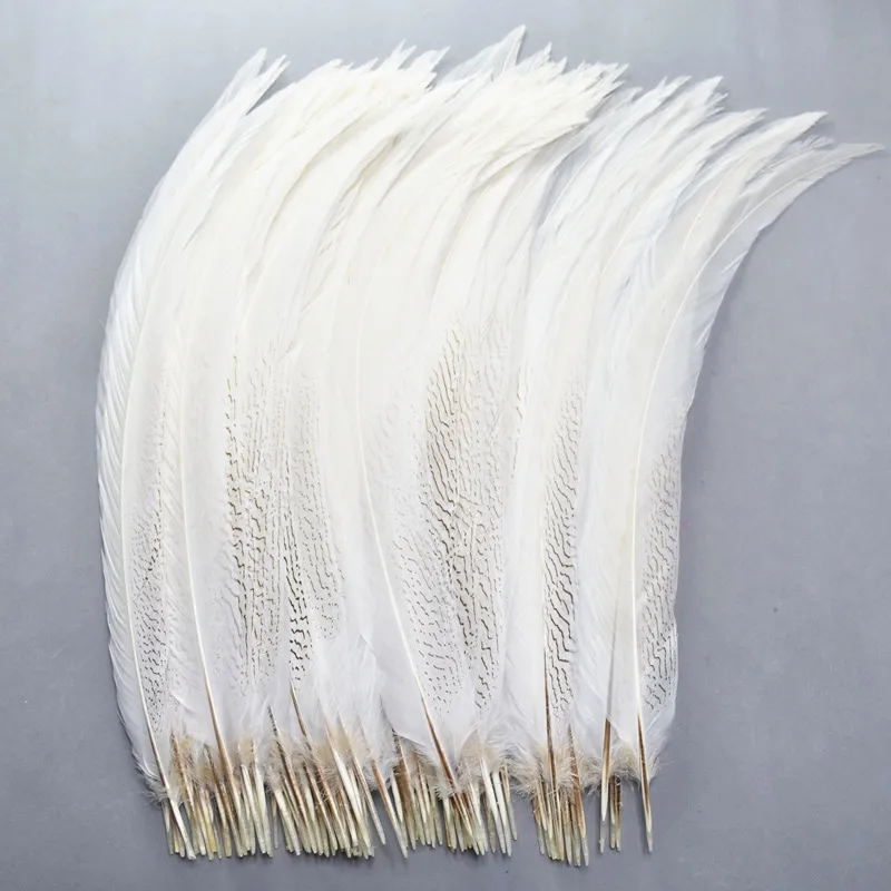 Natural Silver Pheasant Tail Feathers White Pheasant Feathers For Crafts Wedding Costume Feathers silver chicken feathers Plumes