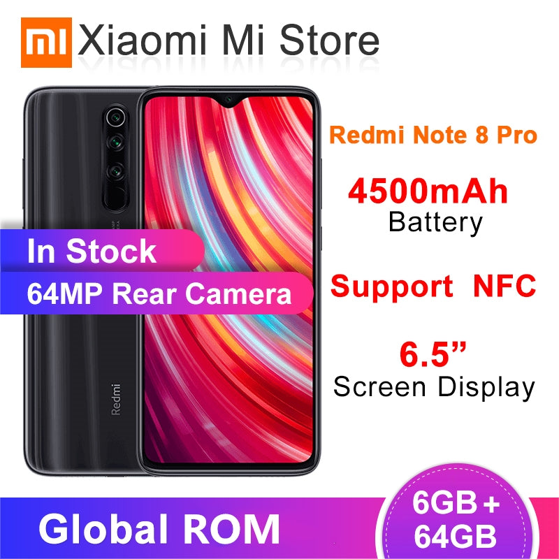 Global ROM Redmi Note 8 Pro 6+64GB with Original EU Charger. >CPU -----------  MTK Helio G90T  Octa Core CPU    >Screen -- -----  6.53-inch 2340x1080p FHD+ Screen   >RAM+ROM --- 6GB+64GB    >Camera -- -- -- 64MP+8MP+2MP+2MP Quad Rear Cameras, 20MP Front Camera   >Battery -- --- - 4500mAh(Typ)   >OS ------------ MIUI,Global ROM,Support Multi-Language, Google Play,...