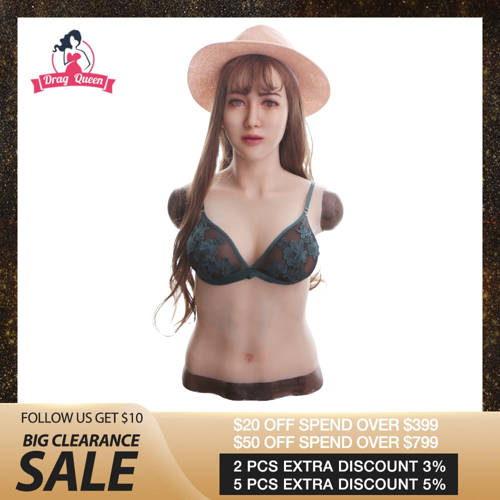 Drag Queen Female Realistic Silicone Masks With Boobs Breast Forms Crossdressing Silicone Female Mask For Men Transvestite