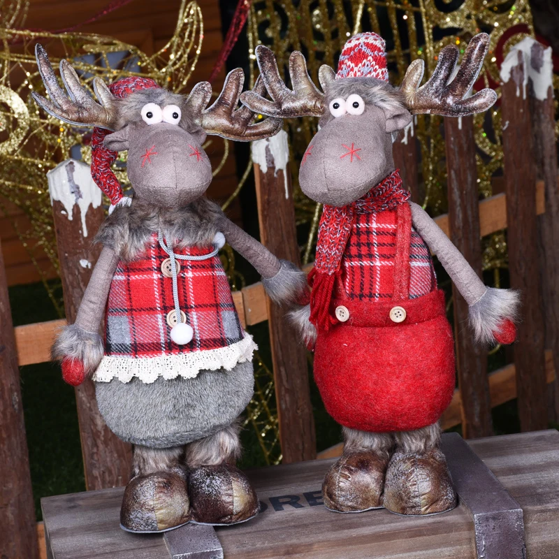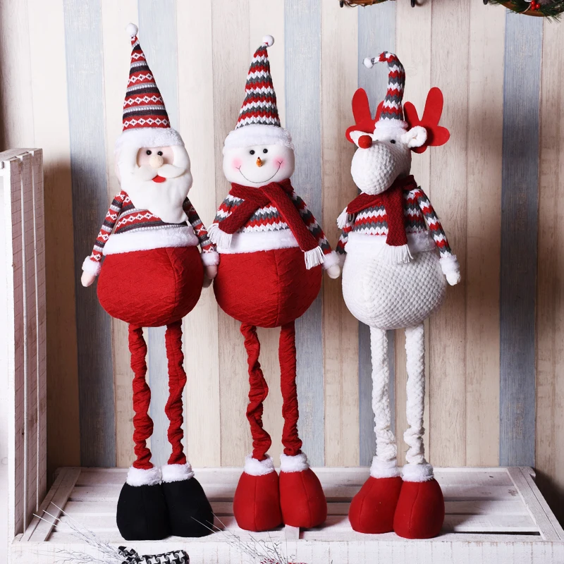 Big Size Christmas Dolls Retractable Santa Claus Snowman Elk Toys Xmas Figurines Christmas Gift for Kid Red Xmas Tree Ornament